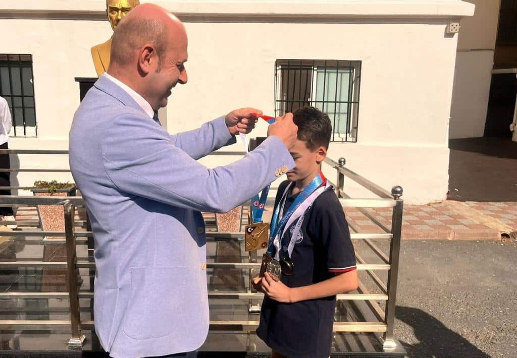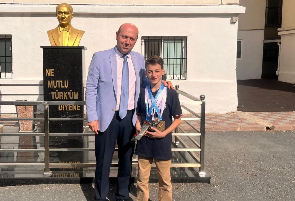 Okul Müdürümüz Volkan KUMAŞ İstiklal Marşı töreni öncesi konuşmasında Kerem'in tüm öğrencilerimiz için model olduğunu söyleyerek tebrik ederek hediye takdiminde bulundu. Öğrencimizin başarılarının devamını diliyoruz. eriz.